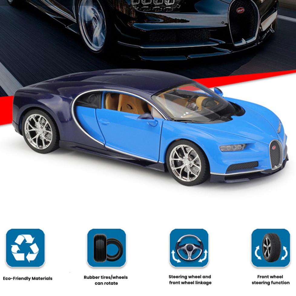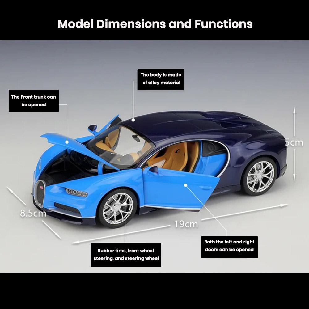 • Name: Bugatti Chiron Sports Car Model 1:24 Die Cast Doors Openable Toys Gift