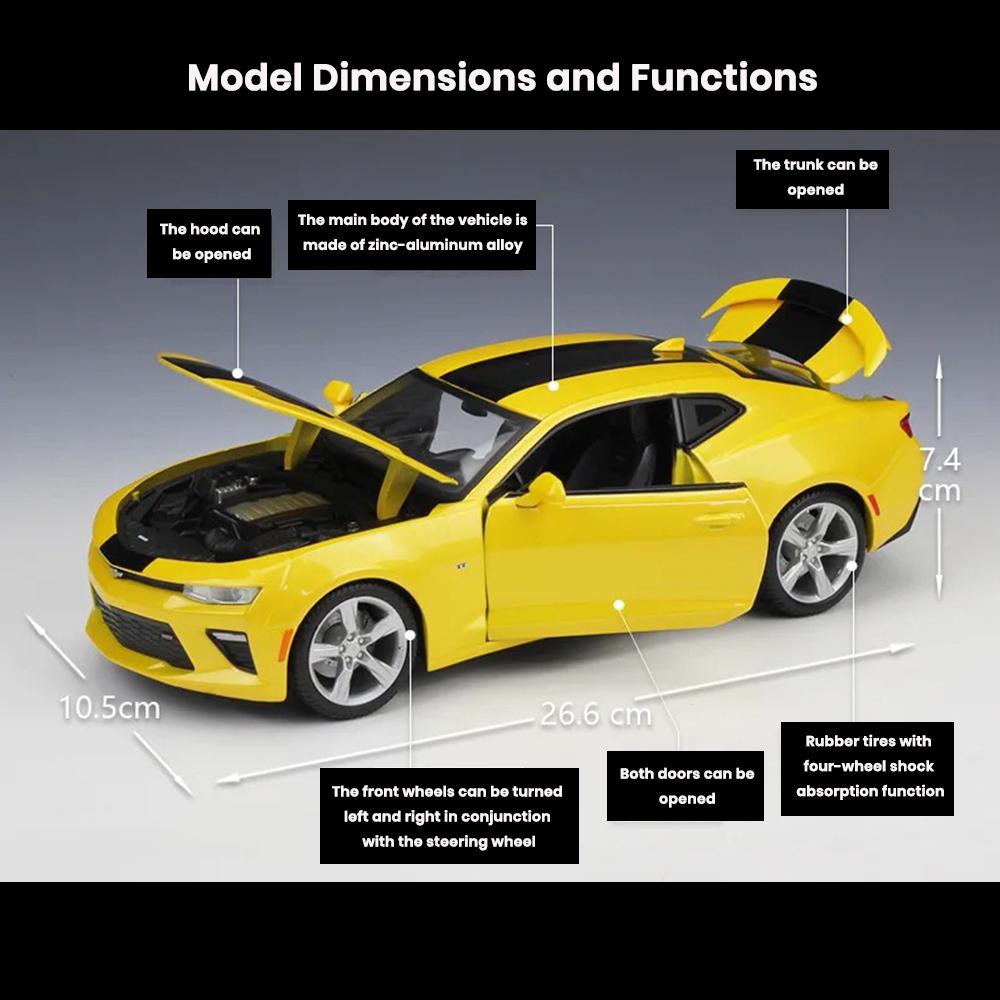 • Name: Chevrolet Camaro SS Car Models 1:18 Die Cast 2017 Doors Hood Trunk Openable Toys