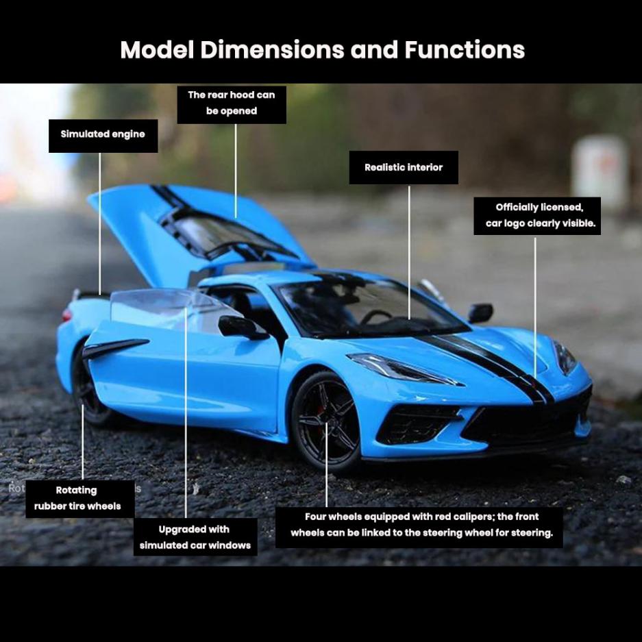 • Name: Chevrolet Corvette C8 Sports Car Model 1:24 Die Cast 2020 Doors Hood Openable Toys