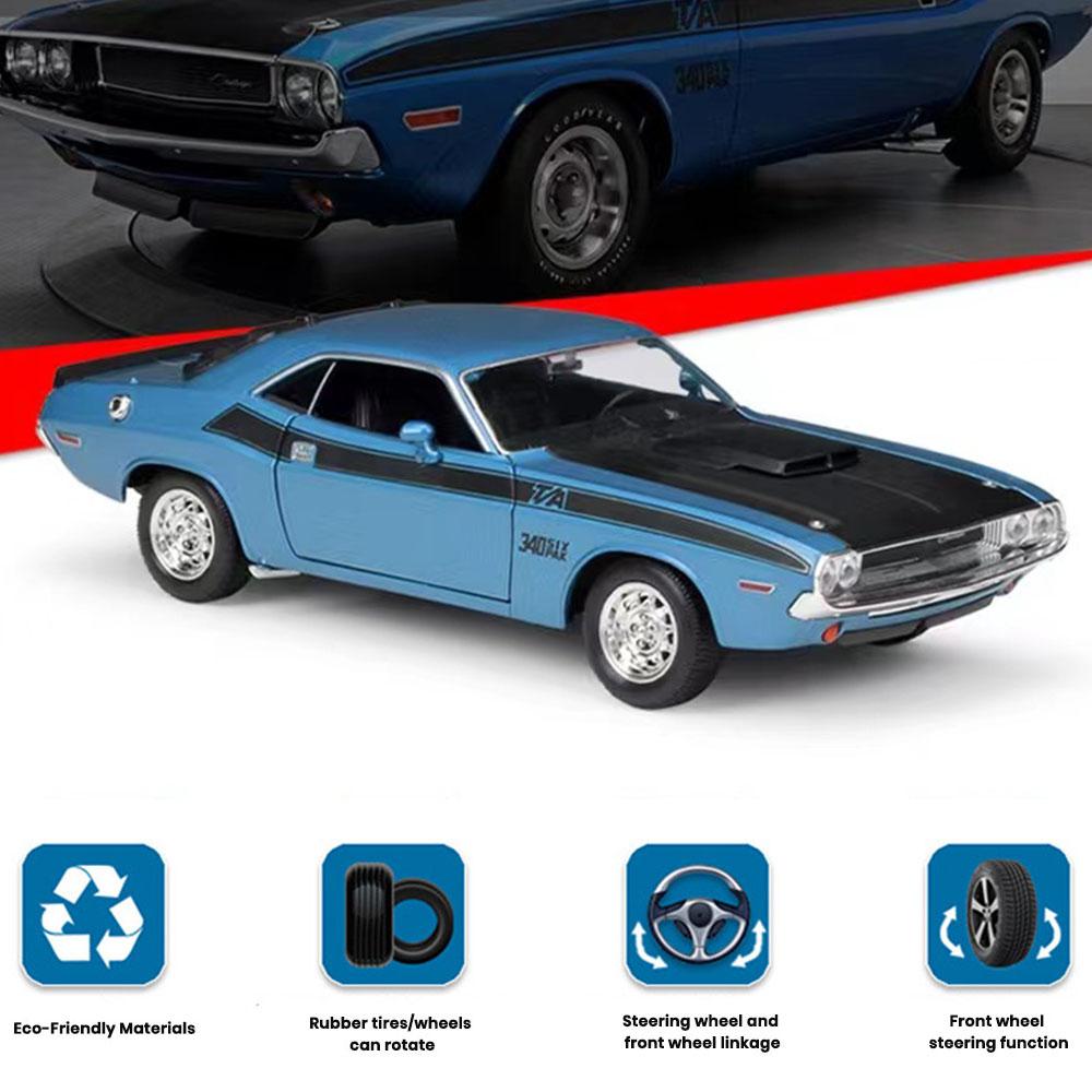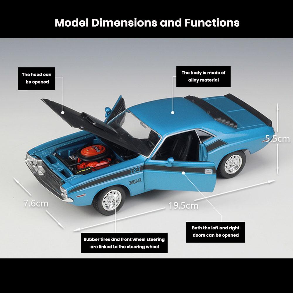 • Name: Dodge Challenger T/A Car Model 1:24 Die Cast 1970 Doors Hood Openable Toys Gift
