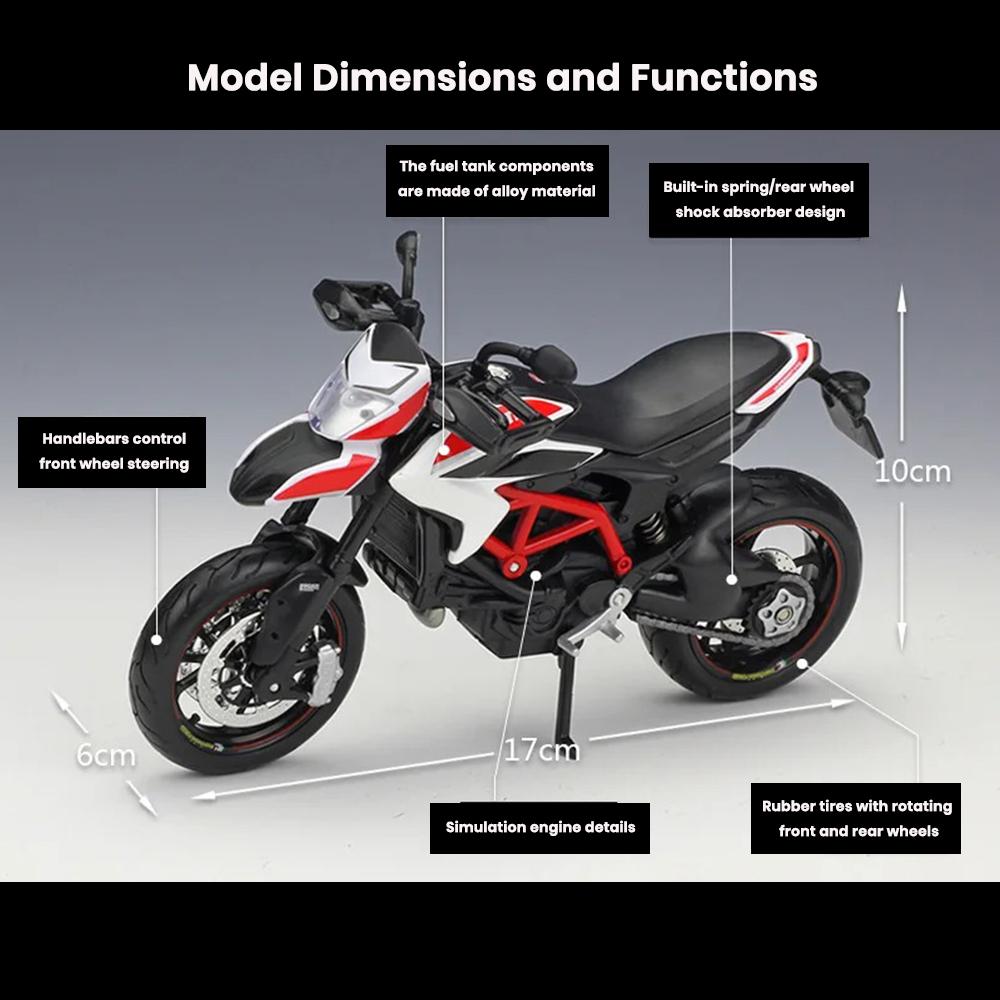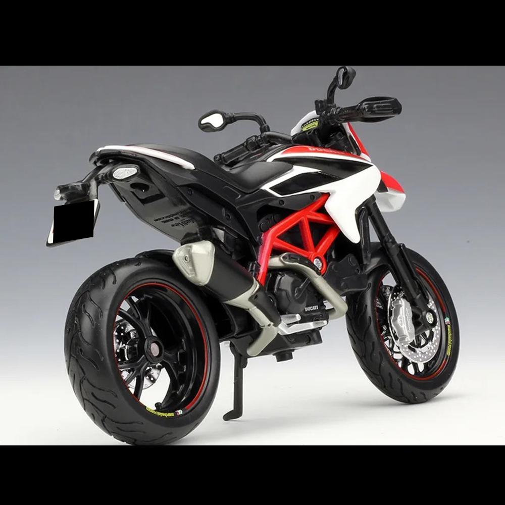 A highly detailed 1:12 scale Ducati Hypermotard SP (2013) die-cast model, built to reflect the sporty supermoto design with realistic structure and functional moving parts.