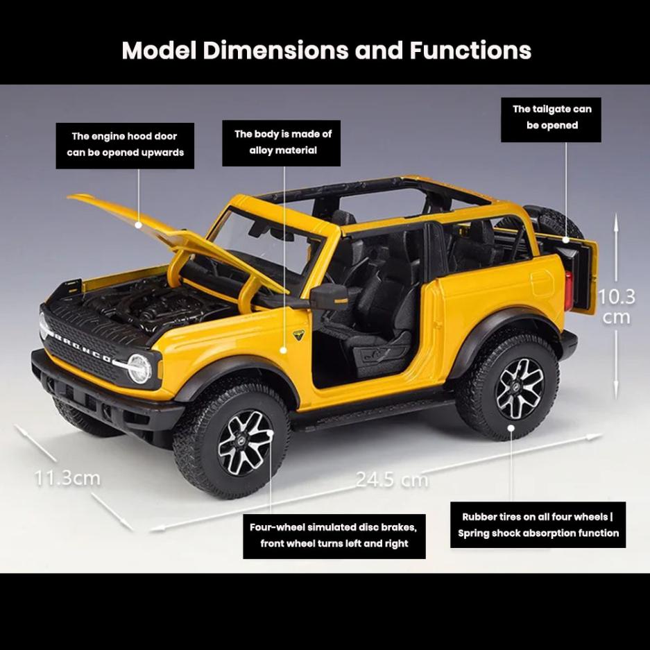 Name: Ford Bronco Badlands Model 1:18 Die Cast 2021 Off-road Hood Openable Toys Gift