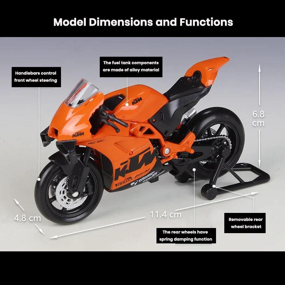 • Name: KTM RC 8C Motorcycle Model 1:18 Die Cast Shock Absorber Toys Collectible Gift
