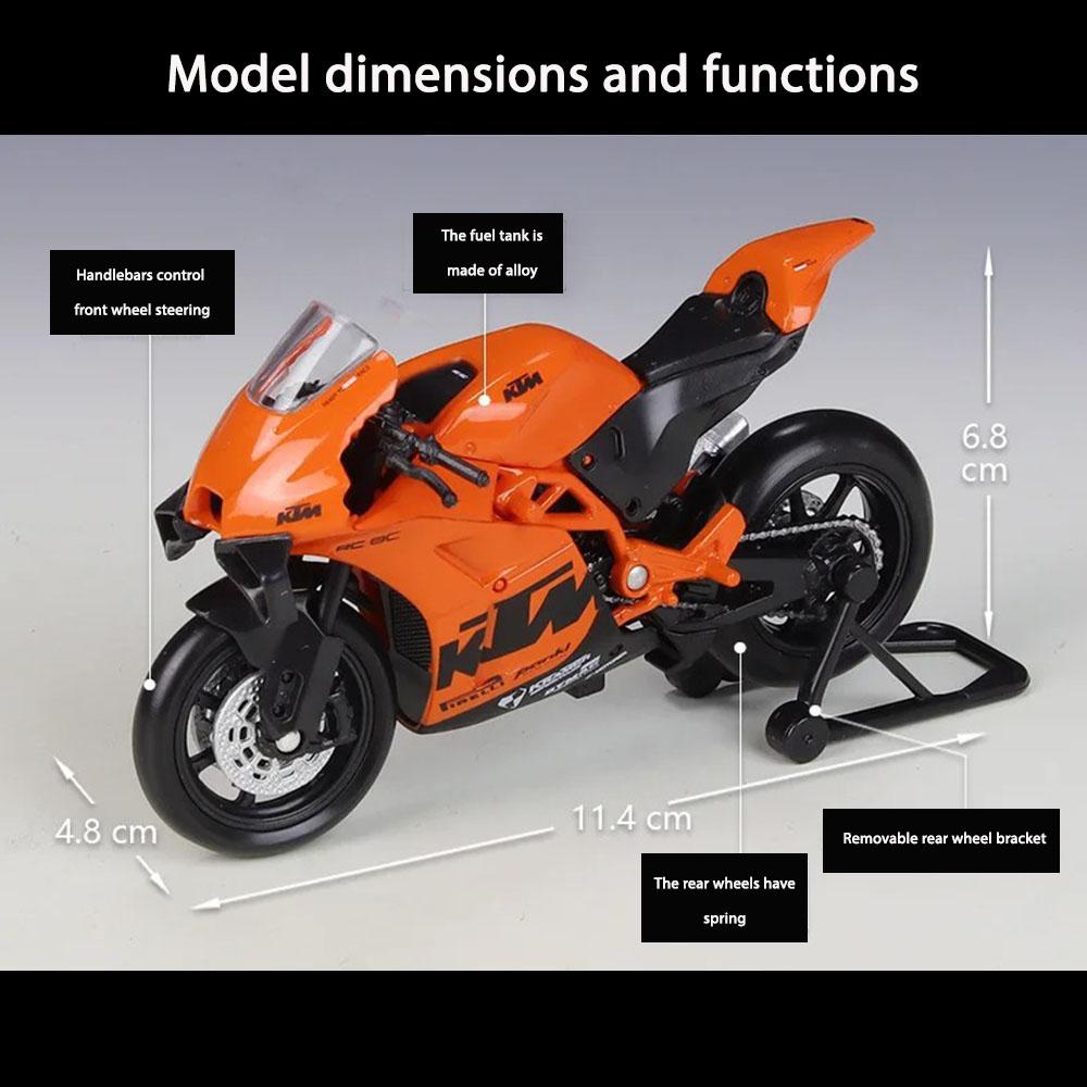 • Name: KTM RC 8C Motorcycle Model 1:18 Die Cast Shock Absorber Toys Collectible Gift