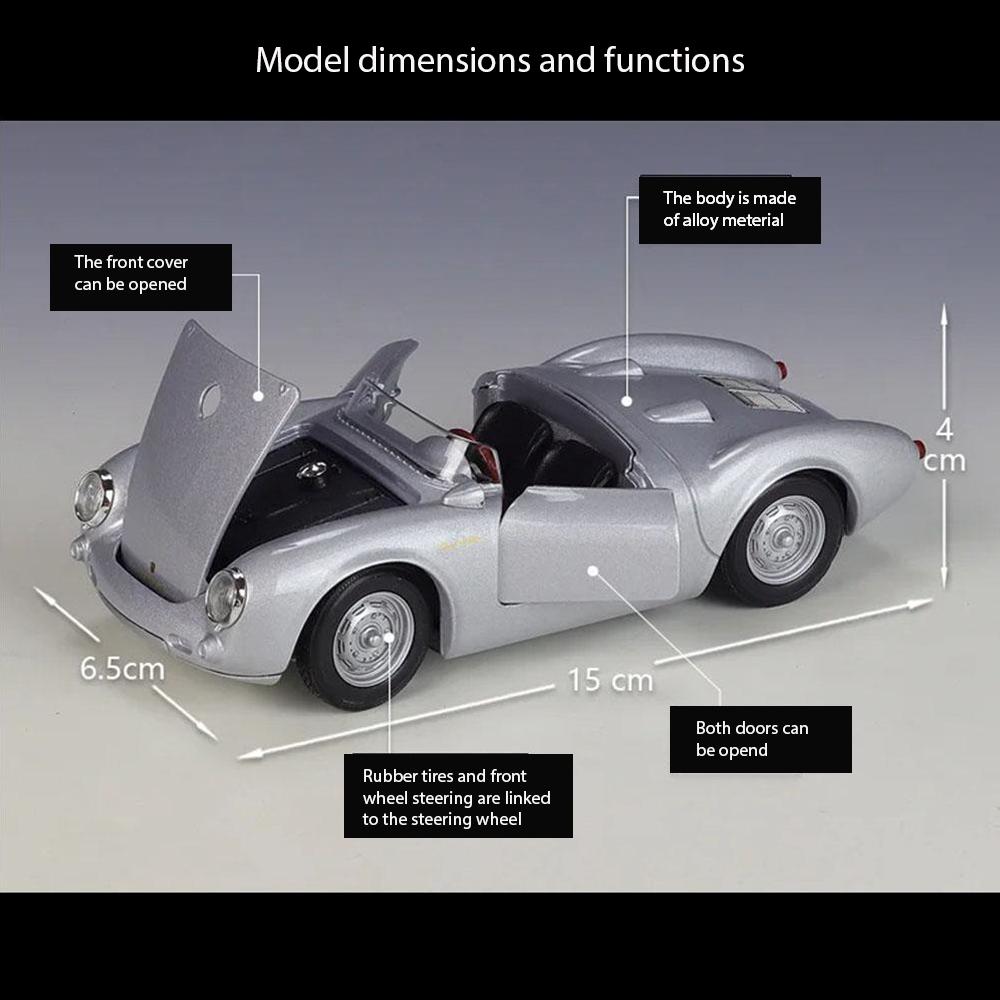Porsche 550 Spyder Car Model 1:24 Die Cast 1953-1956 Doors Front Cover Openable