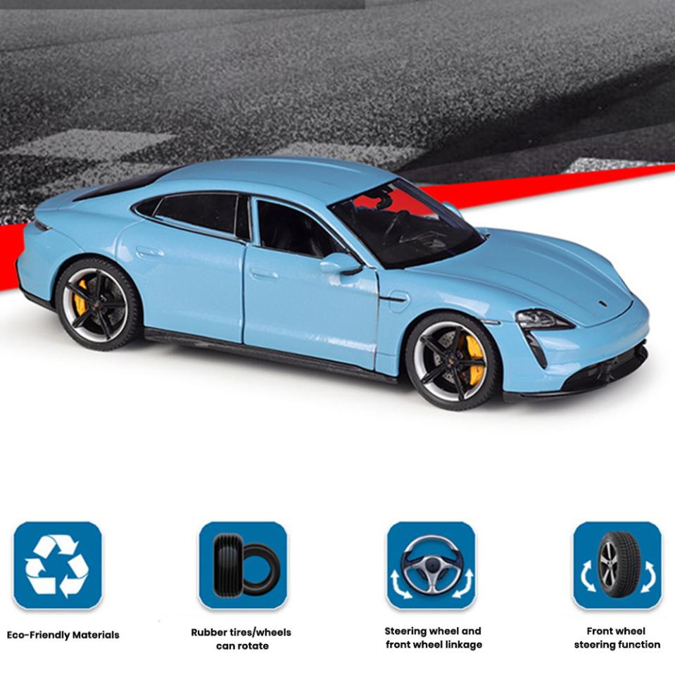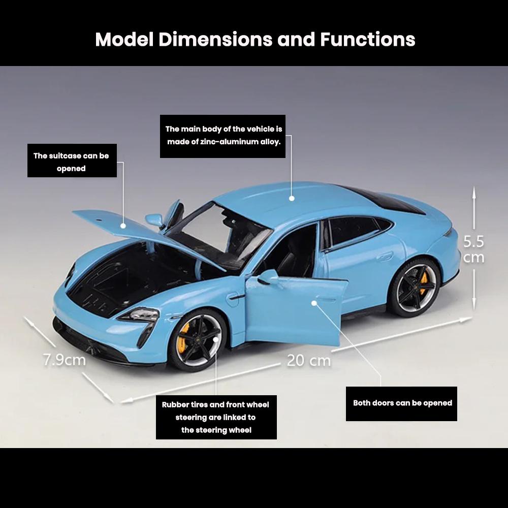 Porsche Taycan Turbo S Car Model 1:24 Die Cast Doors Hood Openable Toys Gift