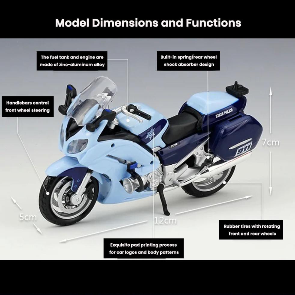 🏍️ Yamaha FJR1300A Police Motorcycle Model 1:18 Die Cast – Shock Absorber Toy